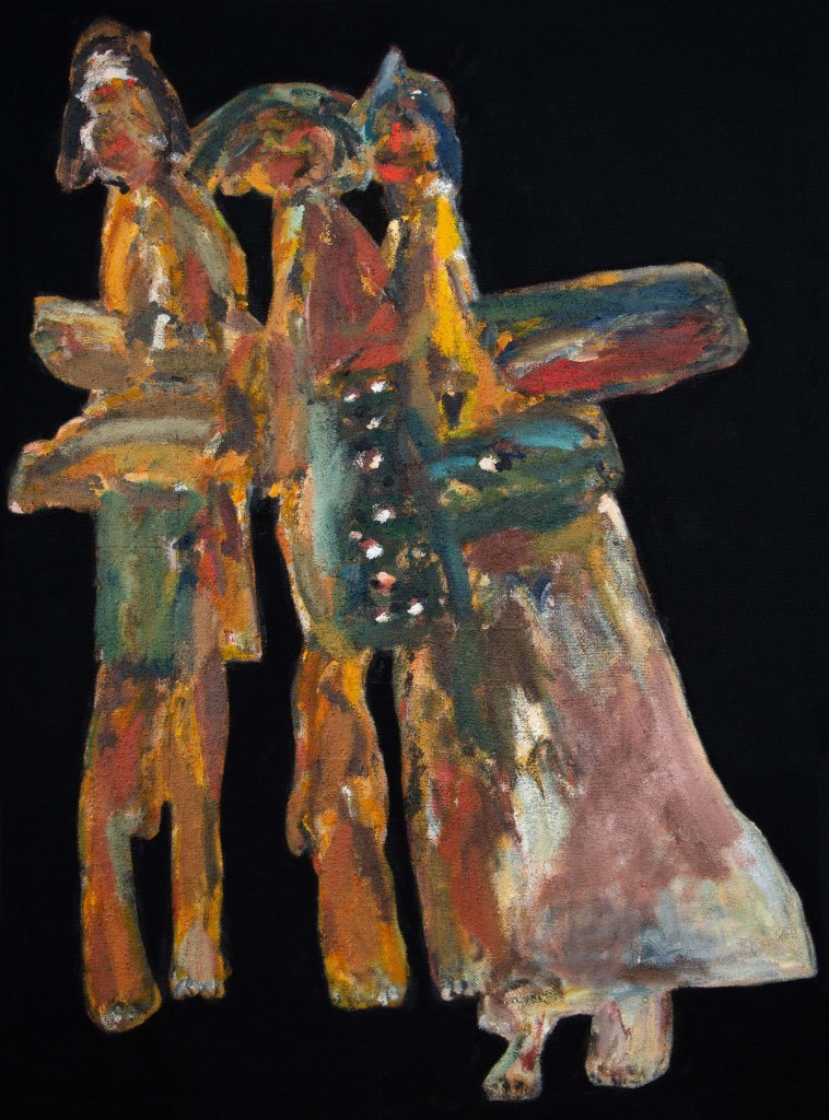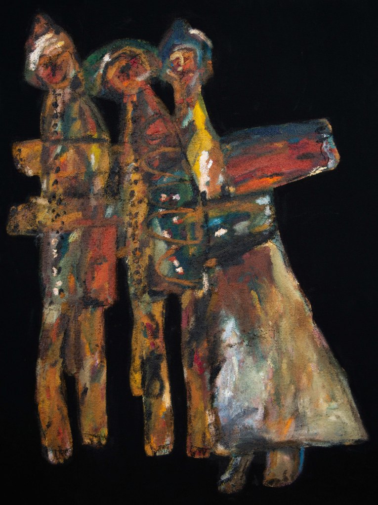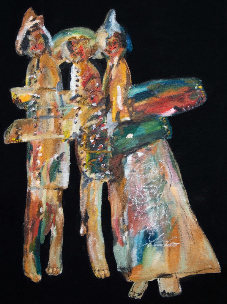 “The figures are probably the opposite of grace, one can be seen smoking a cigarette, and maybe a pipe as well, all of them screaming or smiling creepily, almost like monsters trying to scare or attack — but at the same time, these expressions could also could be seen as somewhat joyous, as if they were dancing towards some exciting destination.“